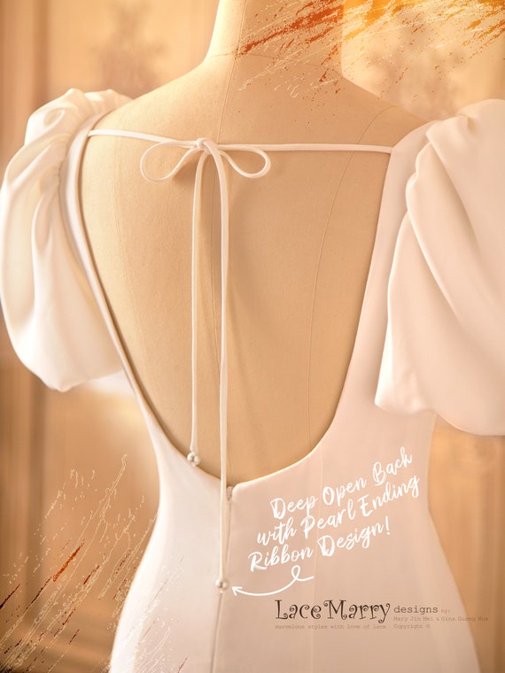 Madia Square Neckline Wedding Dress With Short Puff Sleeves Etsy